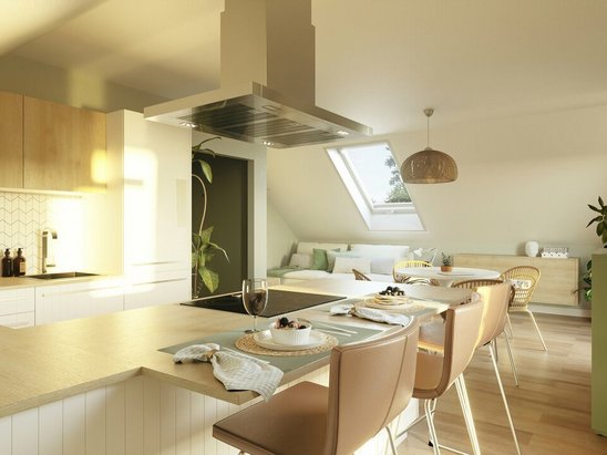 Das flexibel gestaltbare Flair 148 bietet alles, was ein behagliches Zuhause braucht: ein einladendes Wohnzimmer mit einem lichtdurchfluteten Essbereich und großen Fenstern, die reichlich Tageslicht hereinlassen. Die großzügige Küche bietet nicht nur Raum für das familiäre Frühstück unter der Woche.