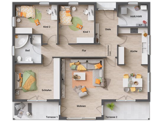 - zwei gleich große Kinderzimmer